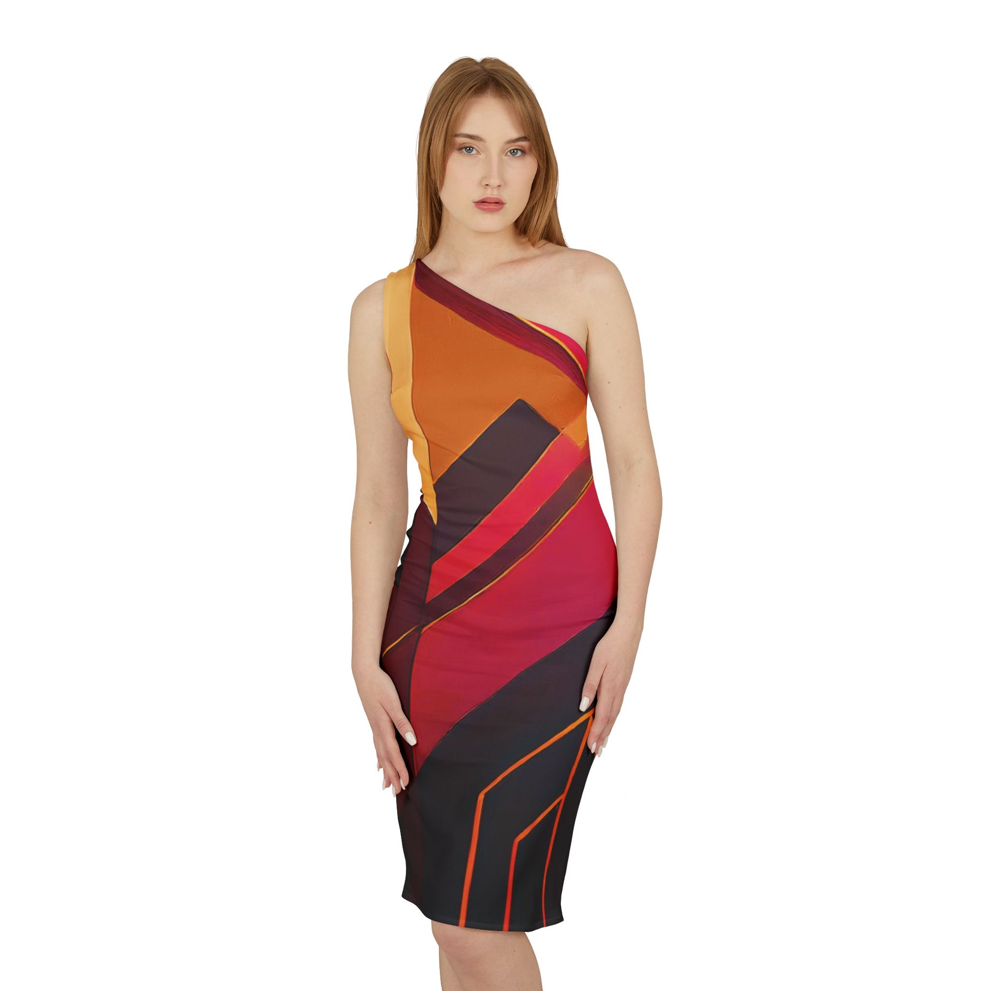 Embrace a unique kind of elegance in this one-shoulder dress featuring a fitted silhouette and a knee-length straight hem. With a sleeveless design and true-to-size fit, it's perfect for any occasion. The hidden side 14" zipper ensures easy dressing, while the YKK invisible nylon upholstery zipper offers a seamless finish. Featuring non-separating, closed-end construction with an automatic lock slider in white, this dress is both functional and fashionable.